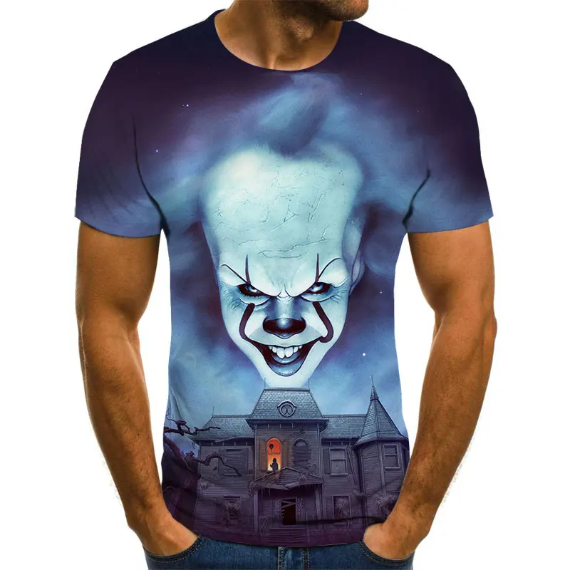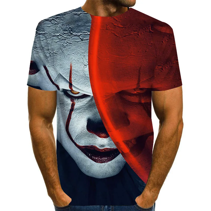 Летняя самая продаваемая модная новая футболка с 3D изображением дикого мальчика, мужская повседневная забавная футболка с клоунским фильмом ужасов и короткими рукавами