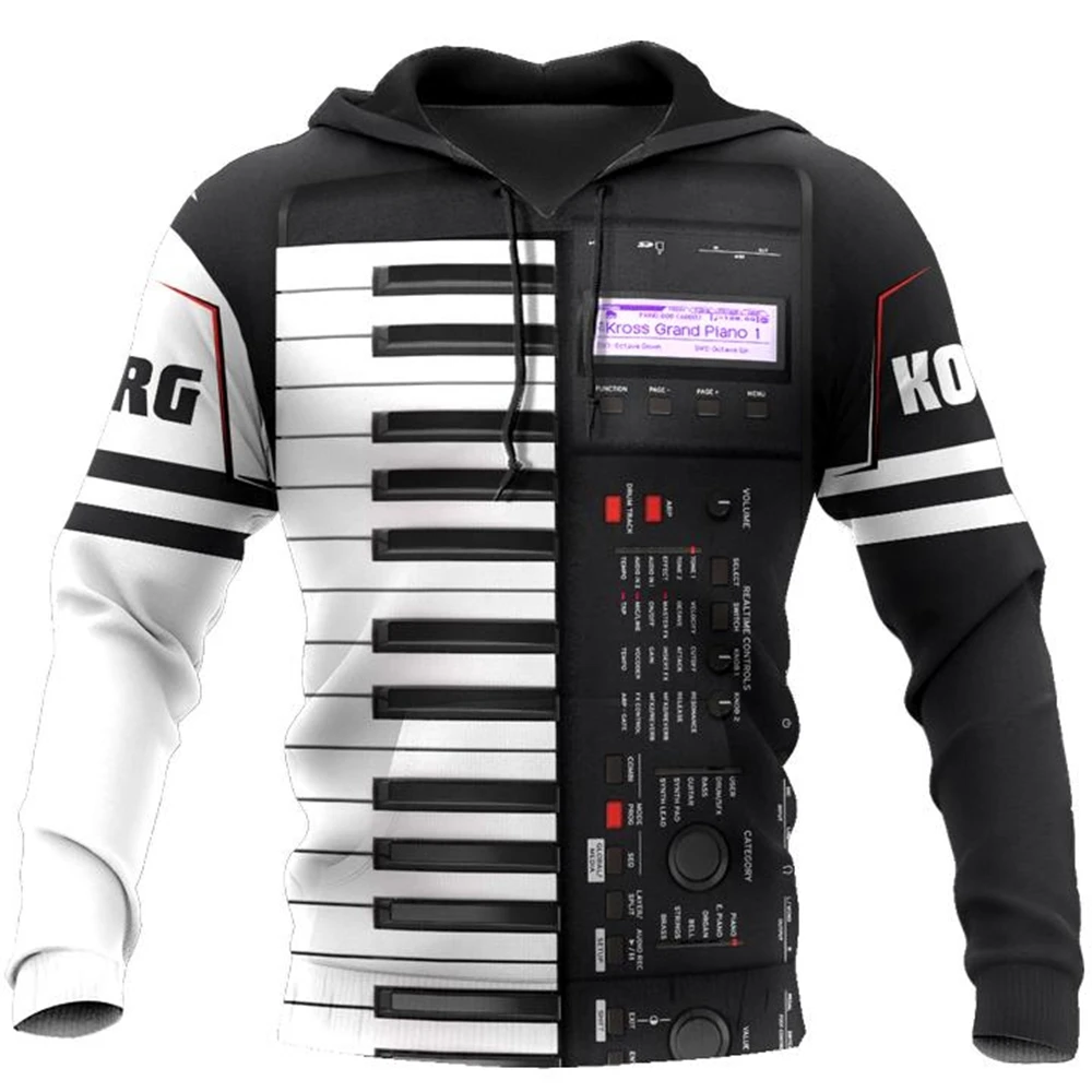 Толстовка с 3D изображением пианинотолстовка с капюшоном для мужчин и женщин весенний и осенний пуловер в полоску с музыкальным инструментом