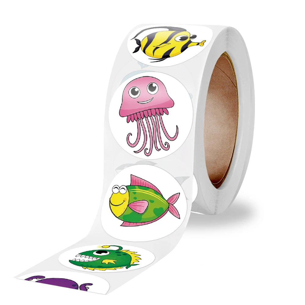 500 шт. Мультяшные наклейки с животными из зоопарка рулон блокнот для ноутбука Переводные картинки океанская жизнь милые мотивационные детские игрушки подарок канцелярские наклейки