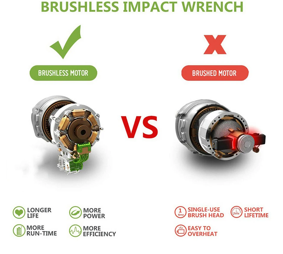 -Бесщеточный двигатель не генерирует искры, когда он работает, и двигатель не изнашивается.