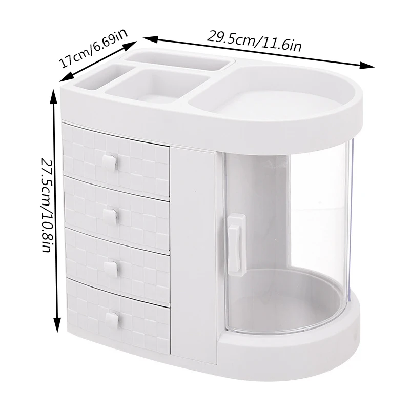 Туалетный столик, стойка для макияжа, коробка для хранения с 4 ящиками, прозрачный вращающийся ящик для хранения губной помады, коробка для хранения кистей для макияжа, ювелирных изделий, спальня
