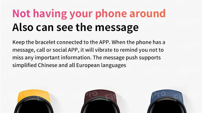 Когда мобильный телефон имеет короткое сообщение, входящий вызов или сообщение из социальных приложений, браслет будет вибрировать, чтобы напомнить вам.