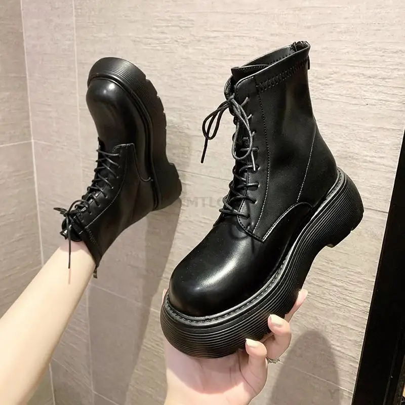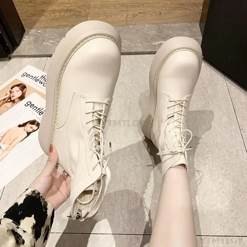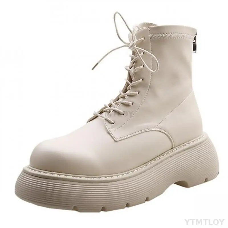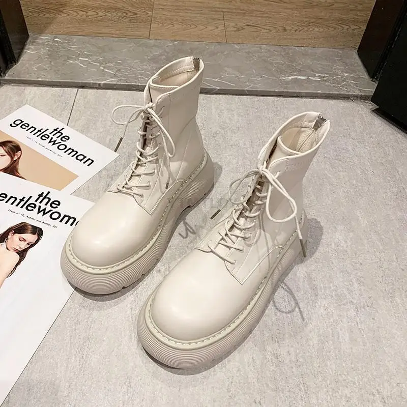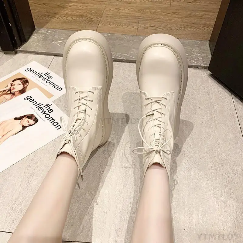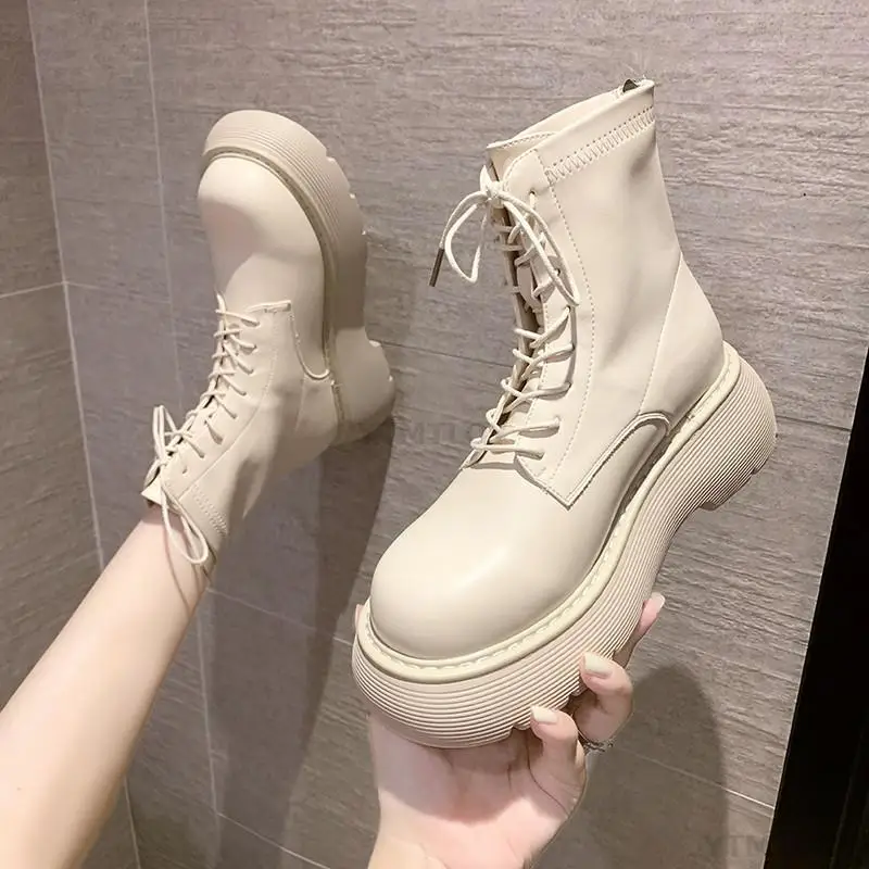 Женские мотоциклетные ботинки на платформе, черные или Бежевые боти...