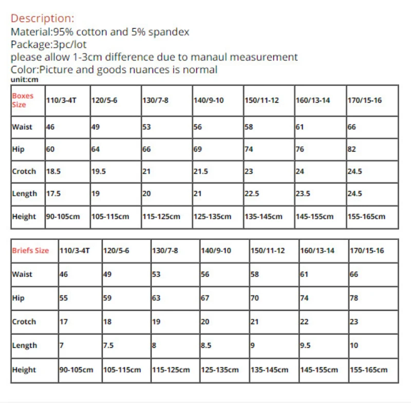 Материал: 95% хлопок и 5% спандекс Посылка: 3 шт./лот Пожалуйста, учитывайте разницу в 1-3 см из-за измерения манола Цвет: Рисунок и нюансы товара-это нормально Единица измерения: см