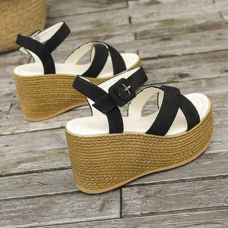 Сандалии женские на платформе, босоножки-гладиаторы на шнуровке, повседневные туфли на танкетке, с открытым носком
