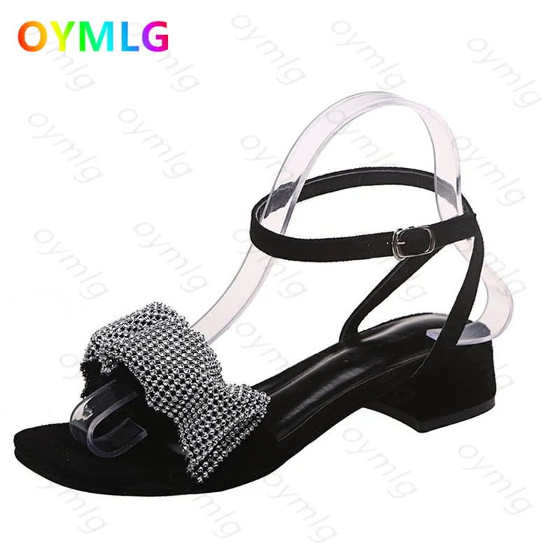 2021 Новое летнее платье; Новый стиль; Сандалии; Женская обувь на толстом каблуке, обувь на плоской подошве; Стразы в стиле Феи слово застежка на высоком каблуке для женщин