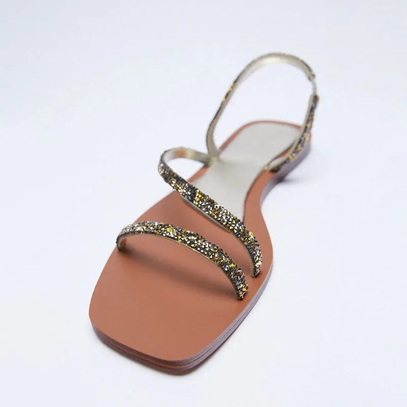 Сандалии женские на плоской подошве, удобная обувь со стразами, рез...
