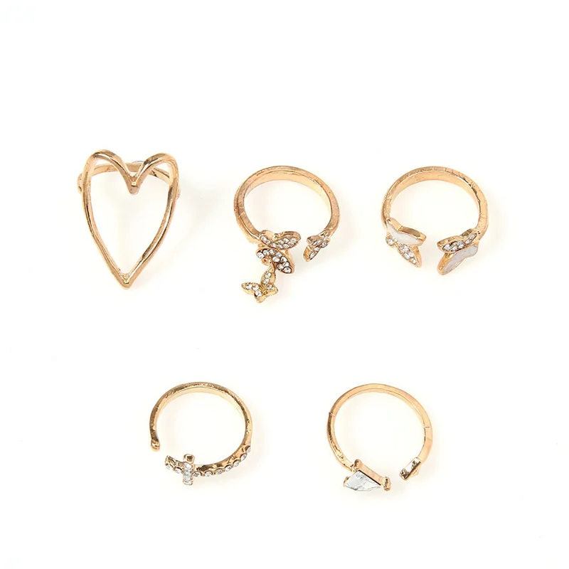 Комплект колец с треугольным крестом, сердечком, бабочкой, 5 шт.компл.