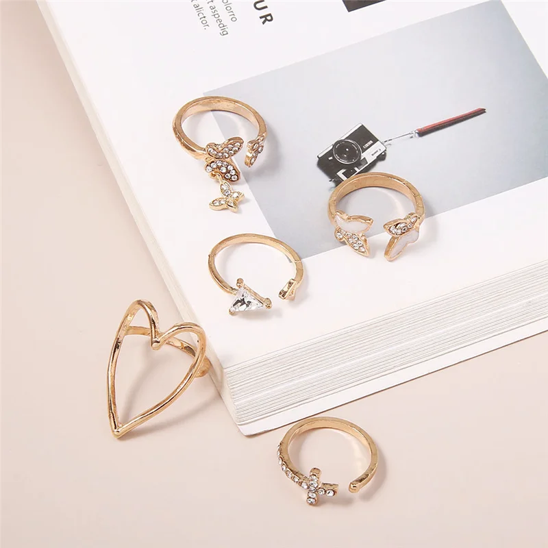 2021 винтажные богемные комплекты колец в форме сердца бабочки золо...
