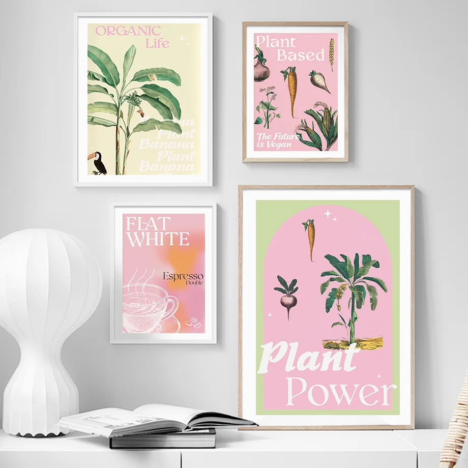 Плоский белый зеленый чай попугай банан растения настенная Картина на холсте скандинавские постеры и принты настенные картины для декора гостиной