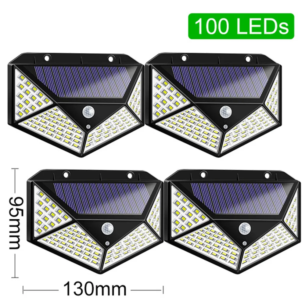 Светодиодная лампа с пассивным ИК датчиком движения, 100 светодиодов, на солнечной панели, Ночной светильник, водонепроницаемый наружный садовый настенный уличный светильник для безопасности с 4 Сторон