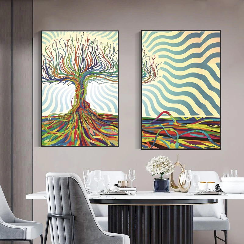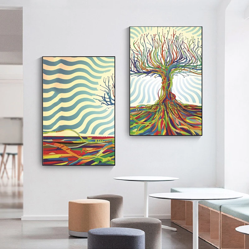 Красочная картина с изображением дерева жизни, абстрактная картина с растениями, плакат и принты, Настенная картина для гостиной, дома, отеля, Декор, Куадрос