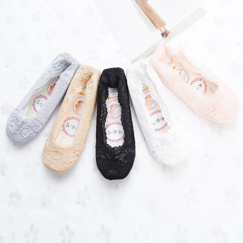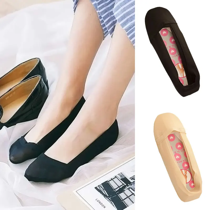 Женские хлопковые незаметные носки, Нескользящие летние однотонные ...