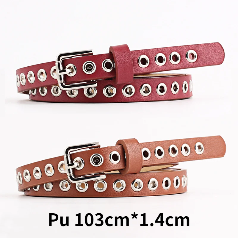 Ремень женский тонкий с люверсами, модный кожаный пояс в стиле хип-...