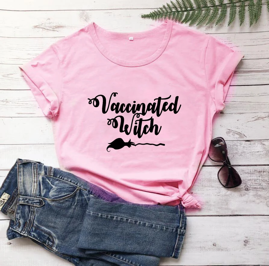 Футболка женская привитая ведьма, забавная рубашка на Хэллоуин, Модный повседневный винтажный топ из чистого хлопка для лета