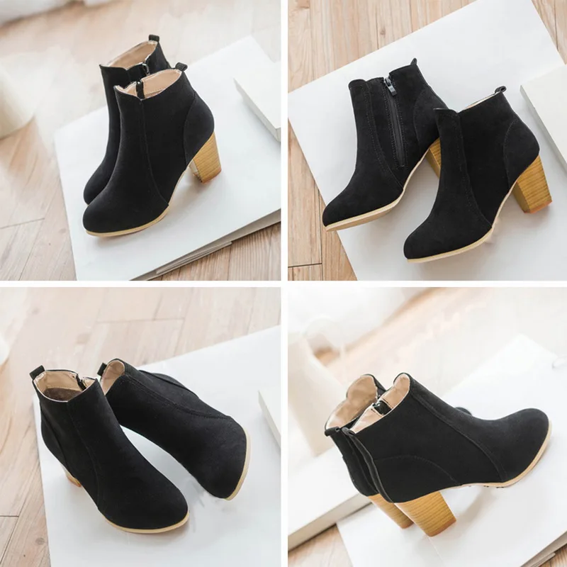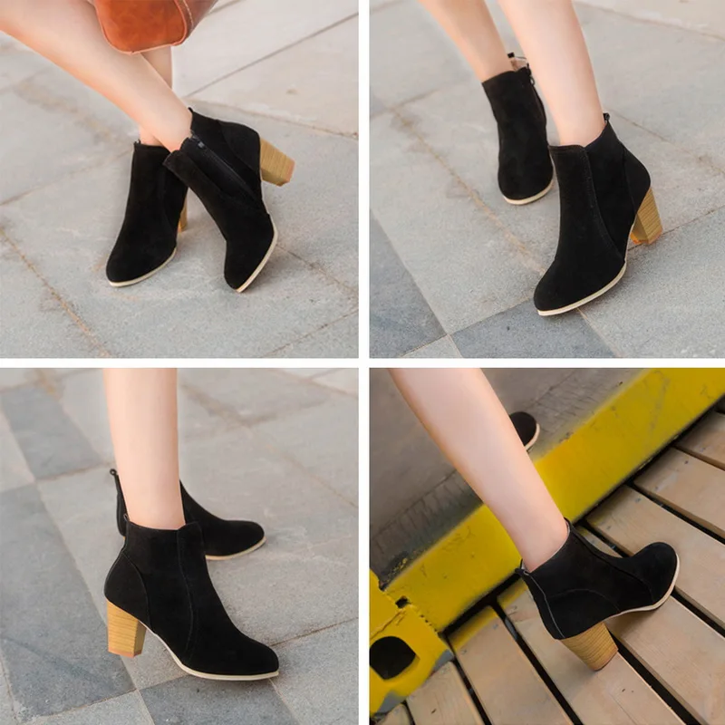 12Slip-on Round Toe 3.5cm Square Heel Solid Casual Black Booties