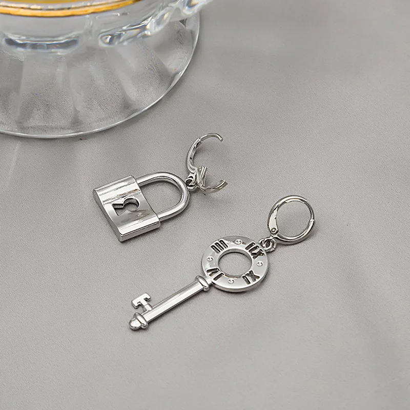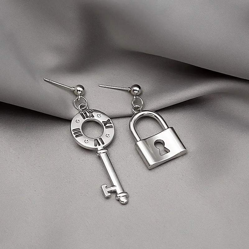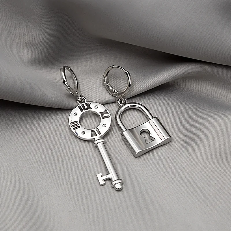 Винтажные Необычные асимметричные серьги в стиле панк с замком для женщин, забавные геометрические модные серьги в корейском ретро-стиле, серебряного цвета