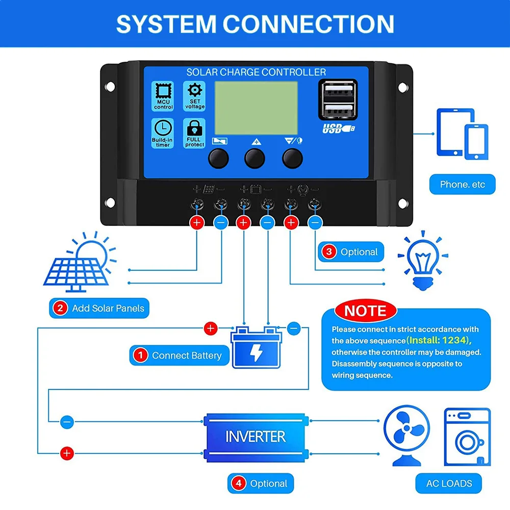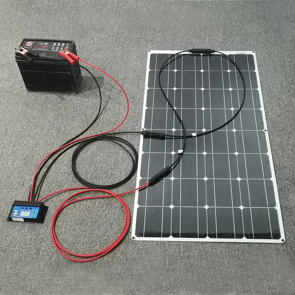 Комплект аксессуаров для солнечной панели 12 в 100 Вт, гибкий фотоконтроллер 10A 20A 30A 40A 50A 60A и кабель для батареи