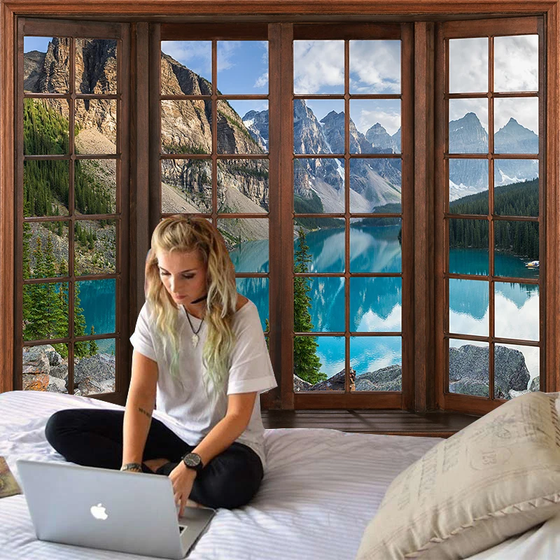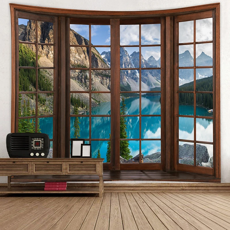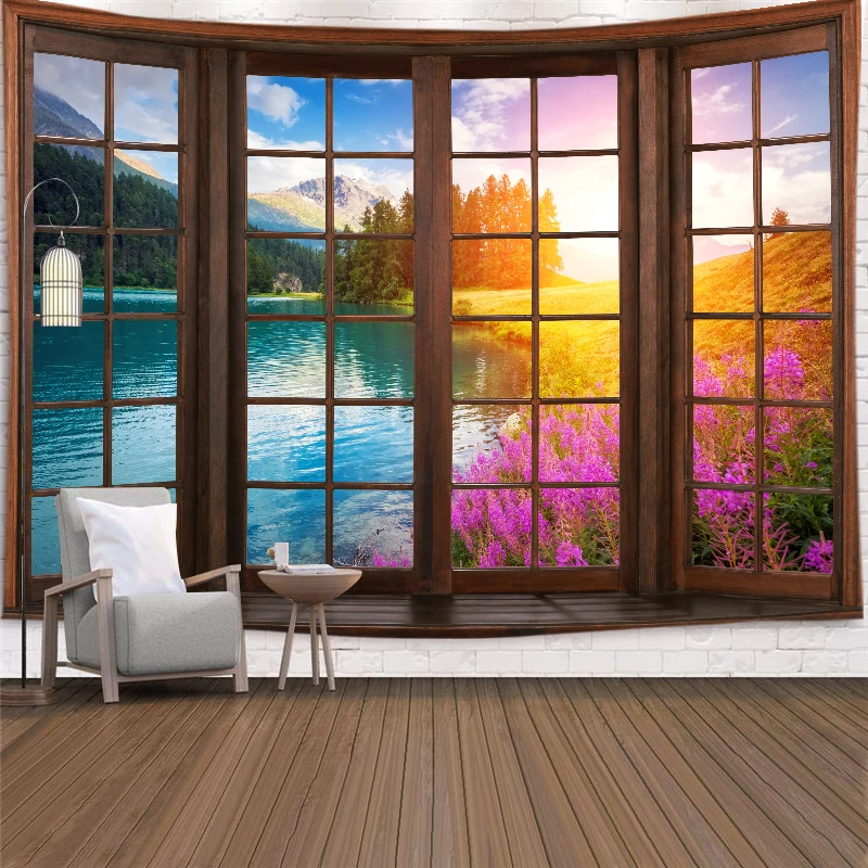 3D Window гобелен с пейзажем Hippie, гора, лаванда, дерево, озеро, настенная ткань, художественный Настенный Ковер, Потолочный фон, домашний декор
