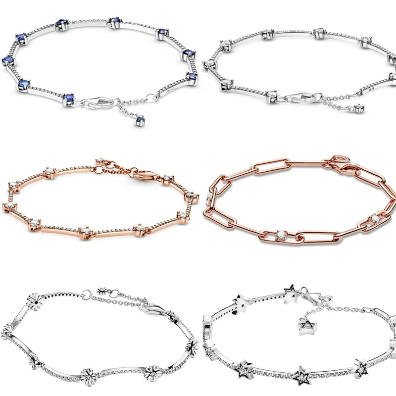 Сверкающий цветок маргаритки паве стержень звено цепи и камни звезда искусственный серебряный браслет подходит для браслета бусины очаровательные Diy ювелирные изделия