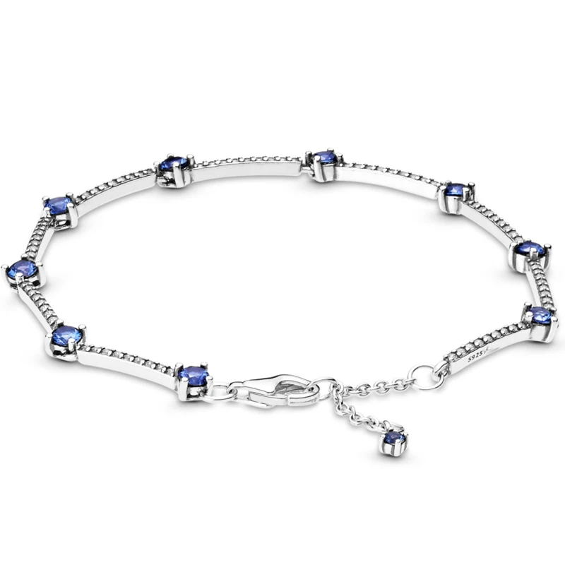 100% 925 пробы Серебряный сверкающий синий и прозрачный паве бар с ...