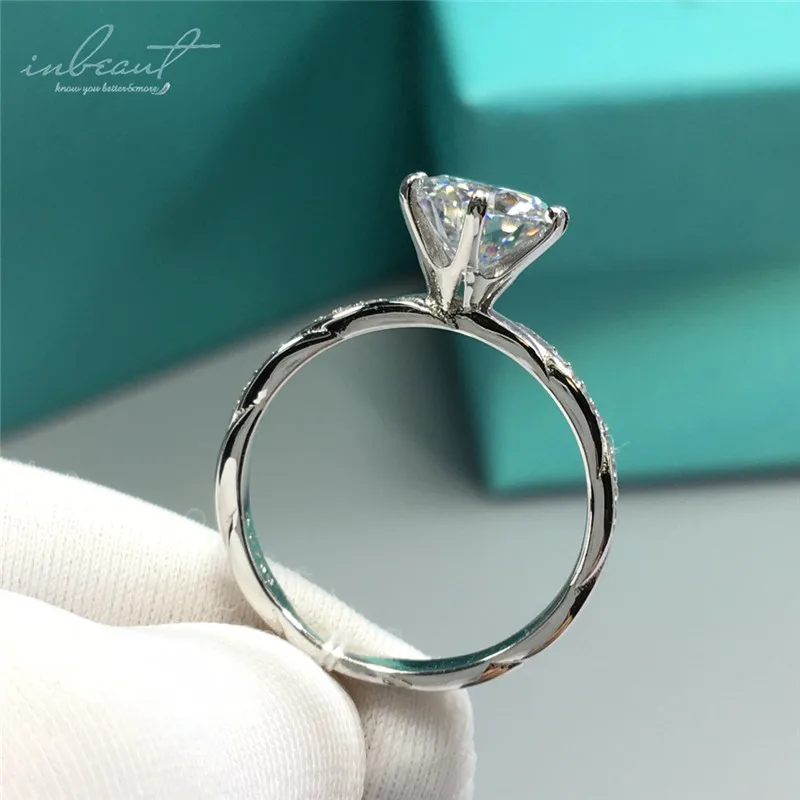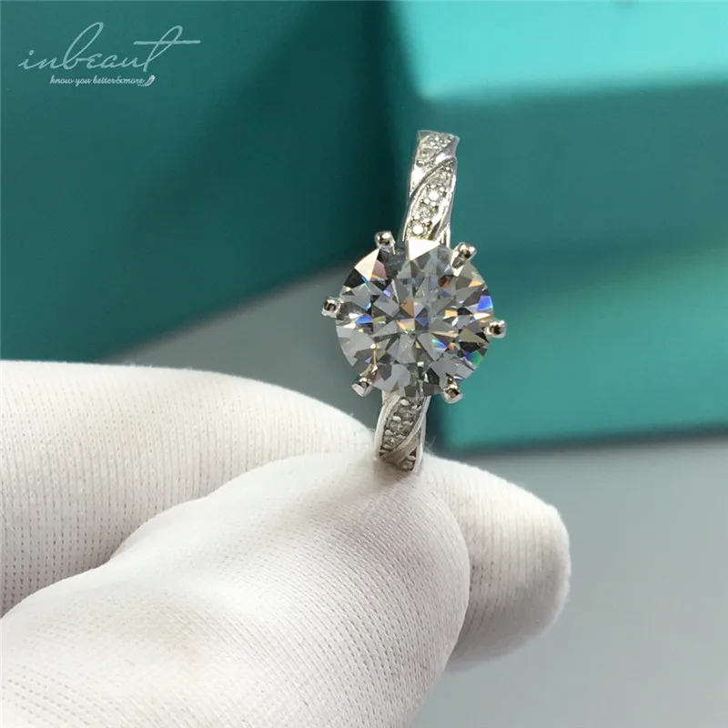 Круглое Сверкающее кольцо inbeaut с муассанитом, кольцо из 925 проб...