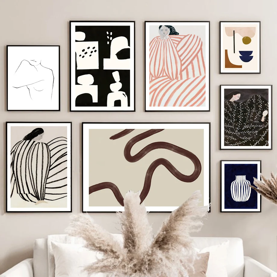 Изогнутая ваза Геометрическая галерея абстрактная настенная Картина на холсте скандинавские постеры и принты настенные картины для гостиной Бохо Декор