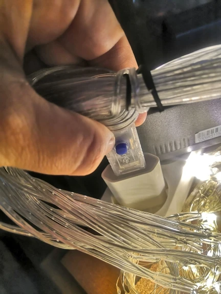 Отличная гирлянда работает как через кнопку так и через пульт, очень уютно смотрится