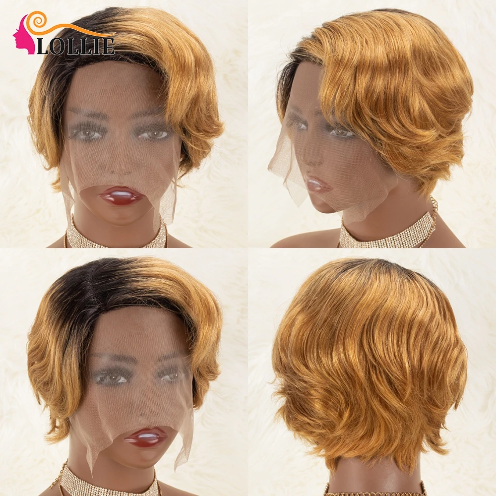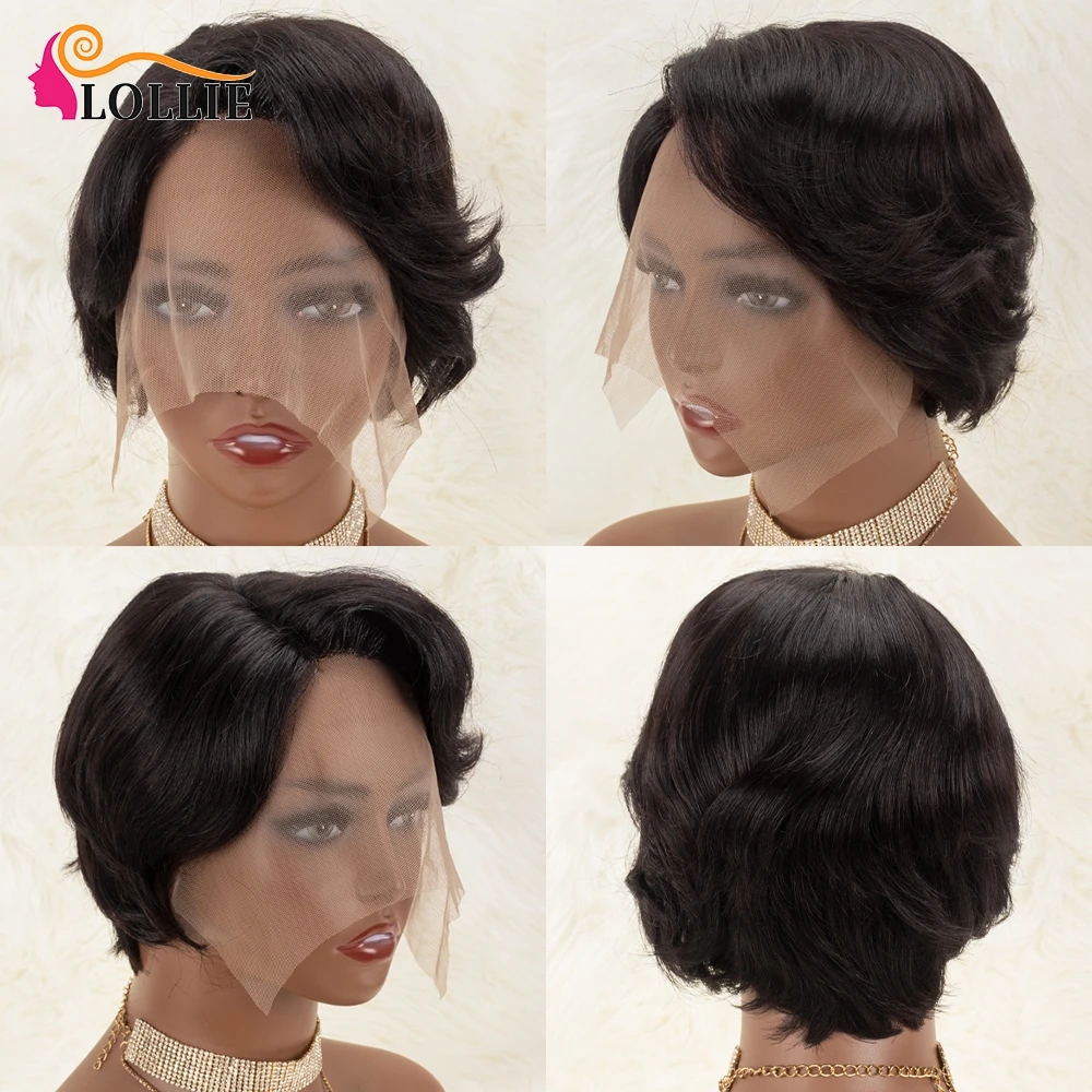 Короткие парики Фея на сетке спереди парики из человеческих волос п...