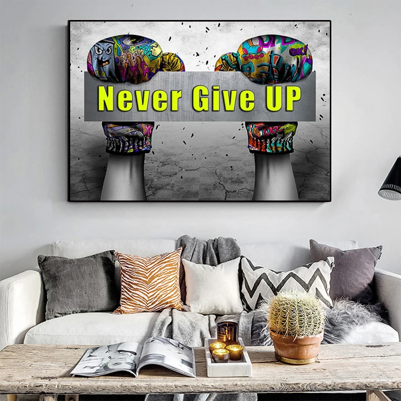 Принты никогда не сдавайся, мотивационные слова, настенное искусство, Декор для дома и офиса, живопись, плакат для дома, современный абстрактный декор комнаты