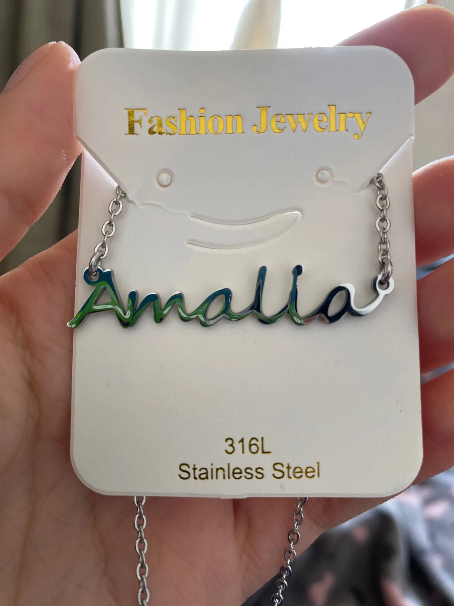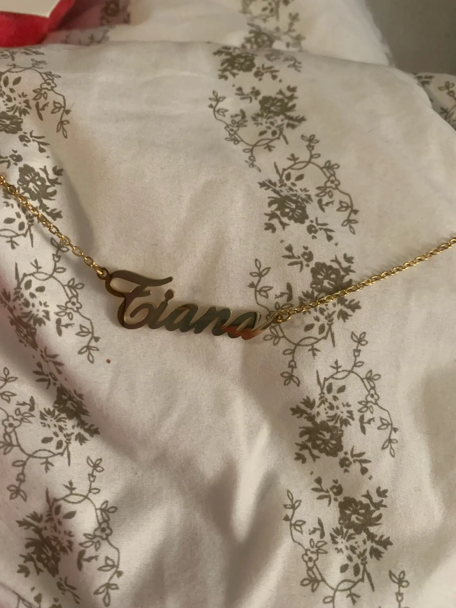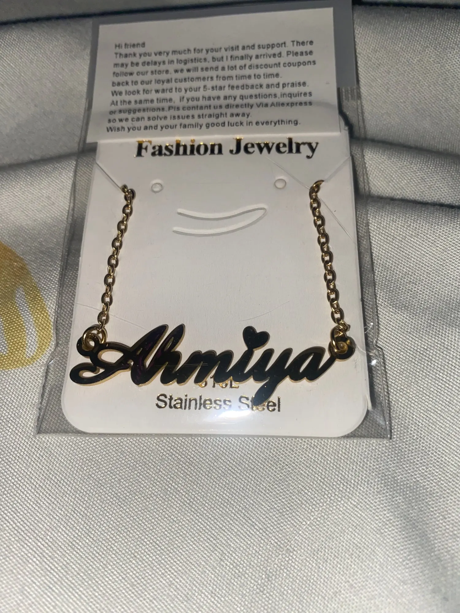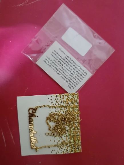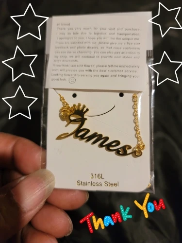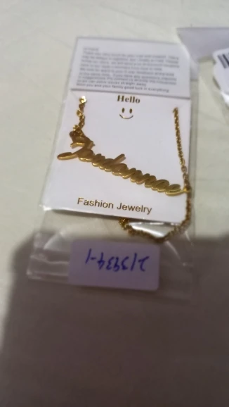Получил ожерелье очень раньше ожидаемой даты прибытия и был таким же, как на изображении. Шрифт был намного больше, чем я ожидала. Но, однако, полностью доволен товаром, потому что это черти стоит своей цены и благодарит вас за ваше обслуживание клиентов.