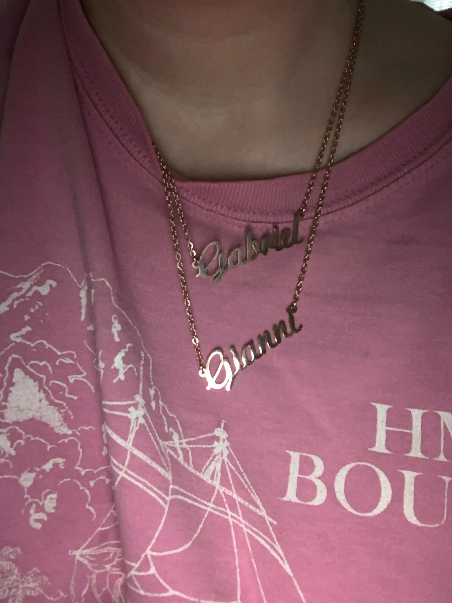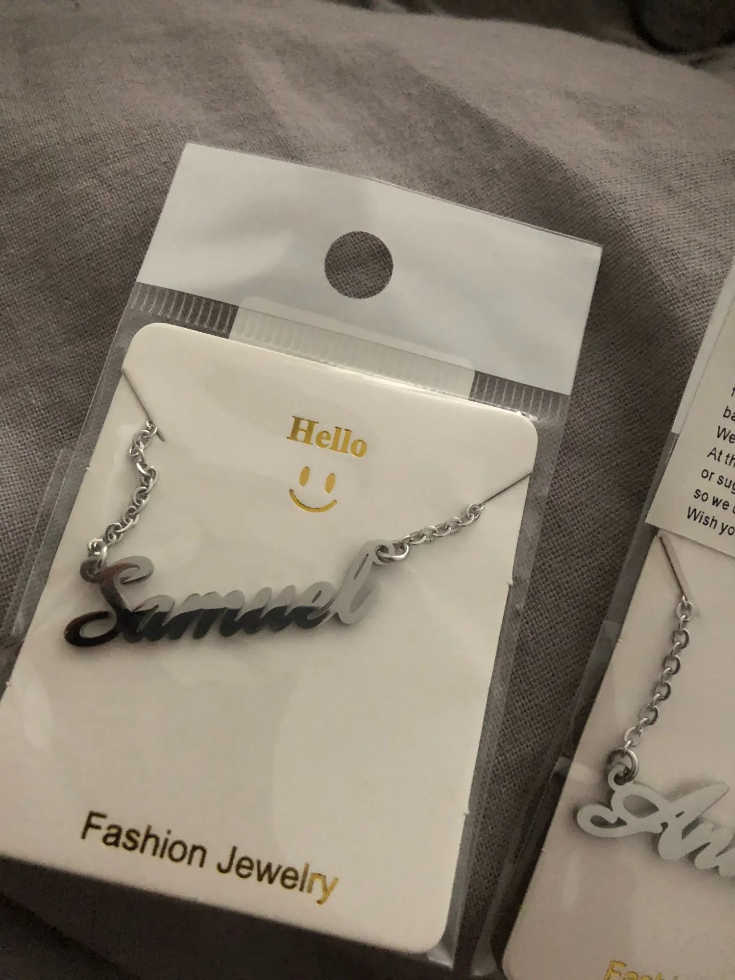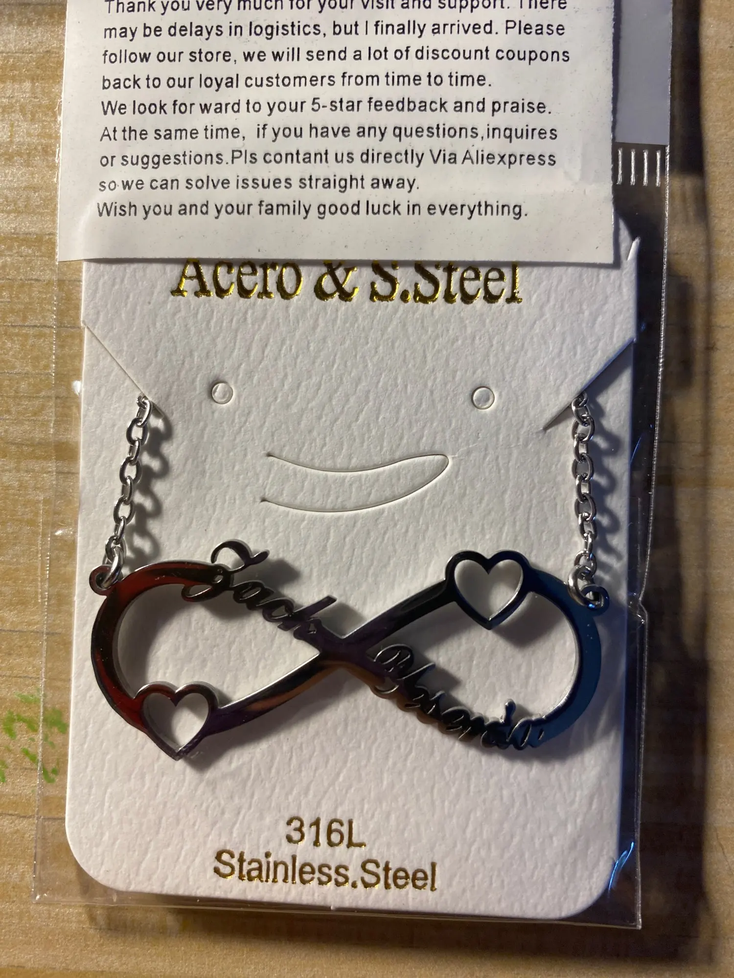Получил ожерелье очень раньше ожидаемой даты прибытия и был таким же, как на изображении. Шрифт был намного больше, чем я ожидала. Но, однако, полностью доволен товаром, потому что это черти стоит своей цены и благодарит вас за ваше обслуживание клиентов.