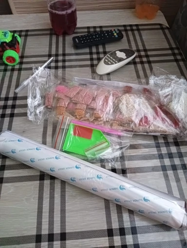Посылка включает в себя: полностью сверлильный алмаз, ткань с принтом, инструменты