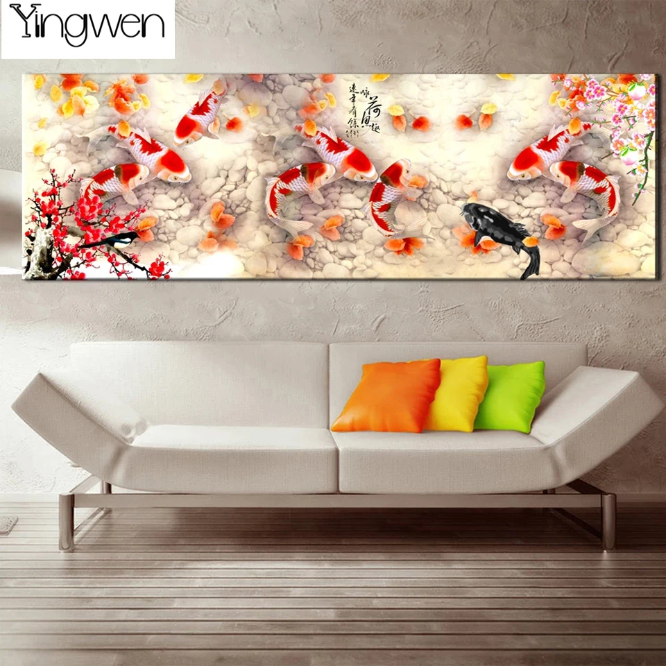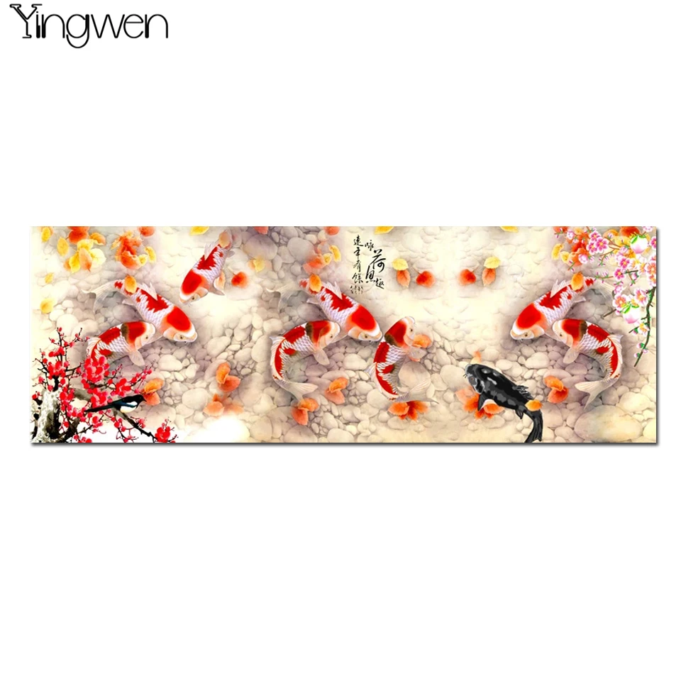 DIY Алмазная картина, китайская абстрактная Nine Koi Fish Landscape, вышивка крестиком, полностью Алмазная мозаика, вышивка, стразы, домашний декор