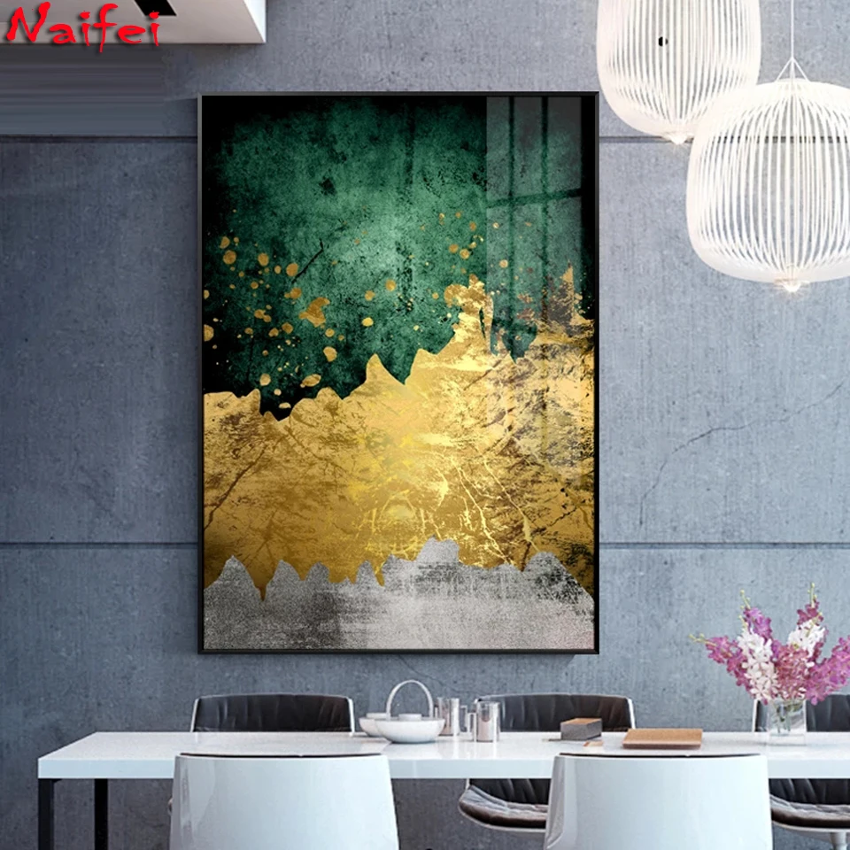 Современное настенное искусство, Золотая 5D алмазная живопись сделай сам, абстрактная изумрудная Золотая фольга, художественный постер, Алмазная мозаика, настенная картина для домашнего декора