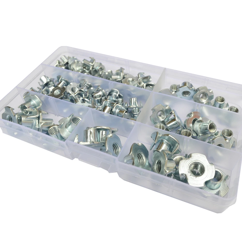 Утолщенная сталь, 90 шт., M4 M5 M6 M8, оцинкованная гайка с четырьмя зажимами, гайка для динамика, Т-образная гайка, тройная гайка, мебельная фурнитура