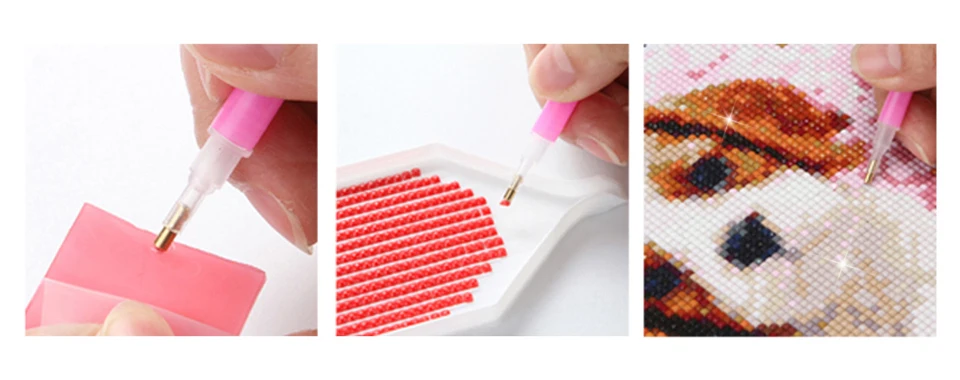Откройте защитную пленку твердого клея, нанесите клей с помощью ручки, затем Наклейте алмаз на холст.