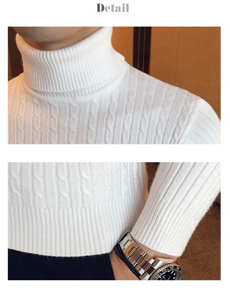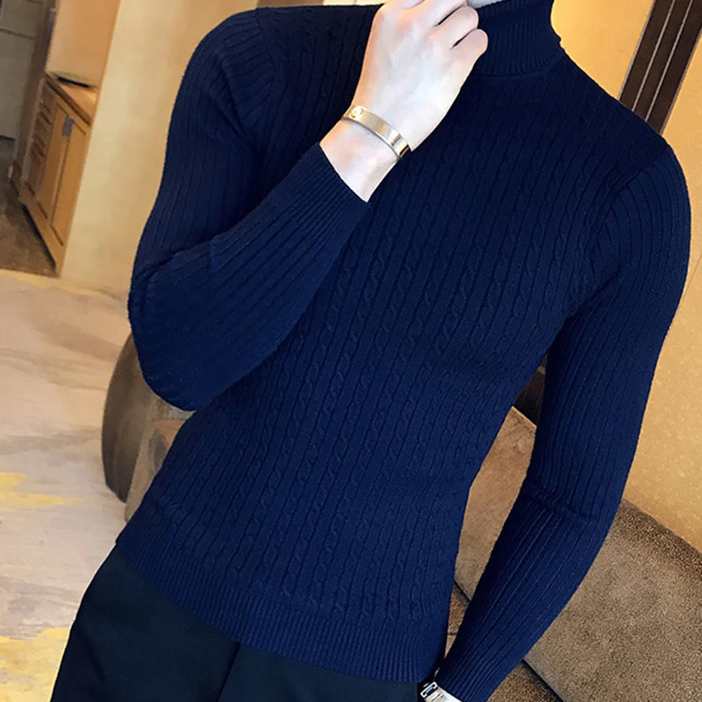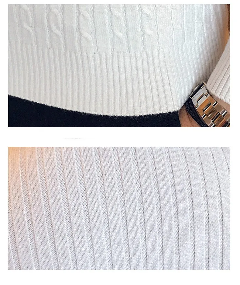 Мужской теплый свитер с высоким воротником, облегающий вязаный пуловер с двойным воротником, зима 2021