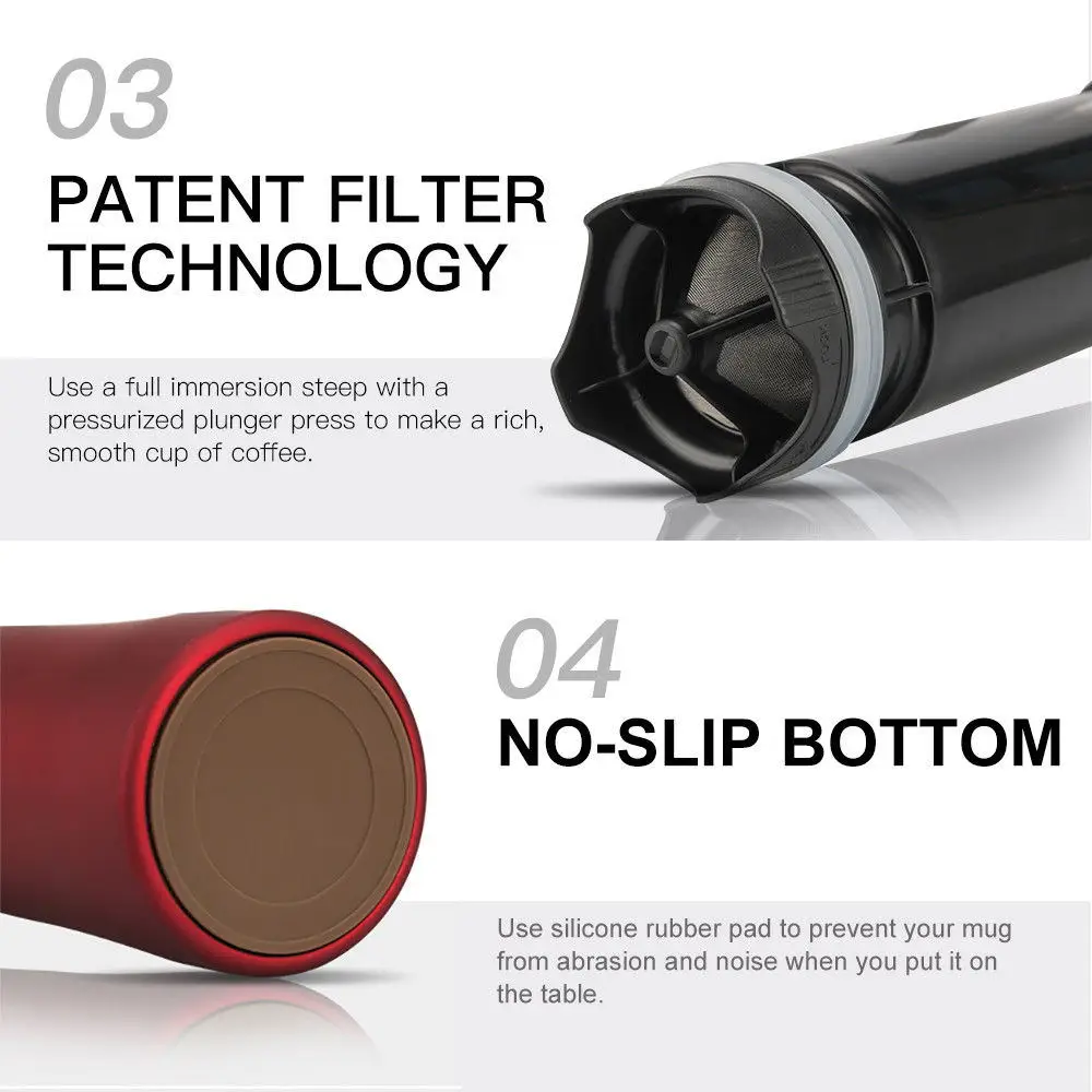 Портативный пресс для кофе, 350 мл, нержавеющая сталь, с двойными с...