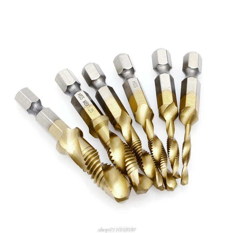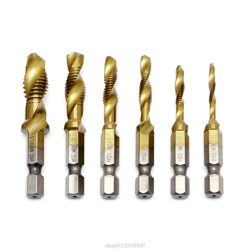 1 шт. шестигранный хвостовик M3-M10 титановое покрытие HSS ручной винт Резьба метрическое сверло под Метчик Bits Jy9 21 Прямая поставка