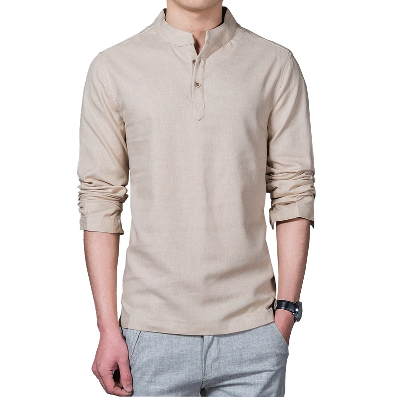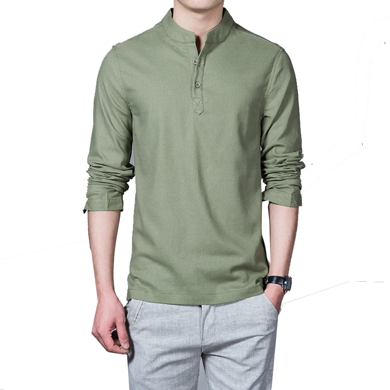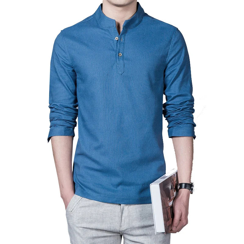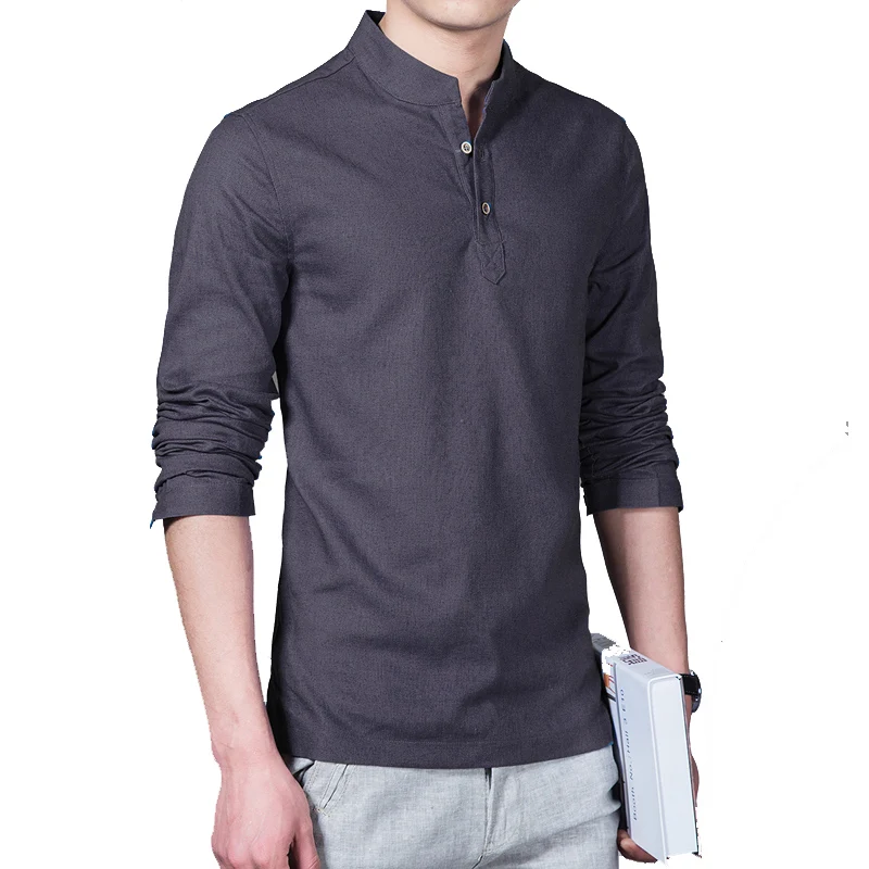 Рубашка Мужская льняная с длинным рукавом, Повседневная дышащая приталенная классическая, в стиле Харадзюку, лето 2022