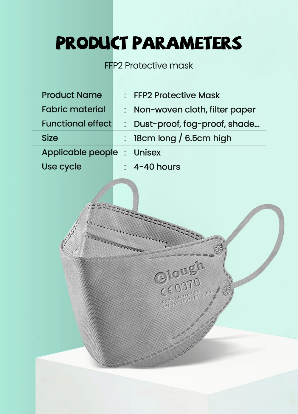 Преимущества маски рыбы:① Удобно носить.② Хороший фильтрующий эффект, особенно для чрезвычайно мелких частиц и пыли.③ Подходит для различных форм лица.④ Высококачественный защитный эффект. Его защитный эффект такой же уровень, как и маска KN95, европейская маска FFP2.⑤ Применимо к различным средам, где защитные маски нужно носить в течение длительного времени, таких как фабрики, школы, компании, торговые центры, песчаные бури, строительные площадки, больницы, парки и т. д.Пожалуйста, обратите внимание, что указанный продукт производится и распространяется за рубежом и регулируется законами страны происхождения.