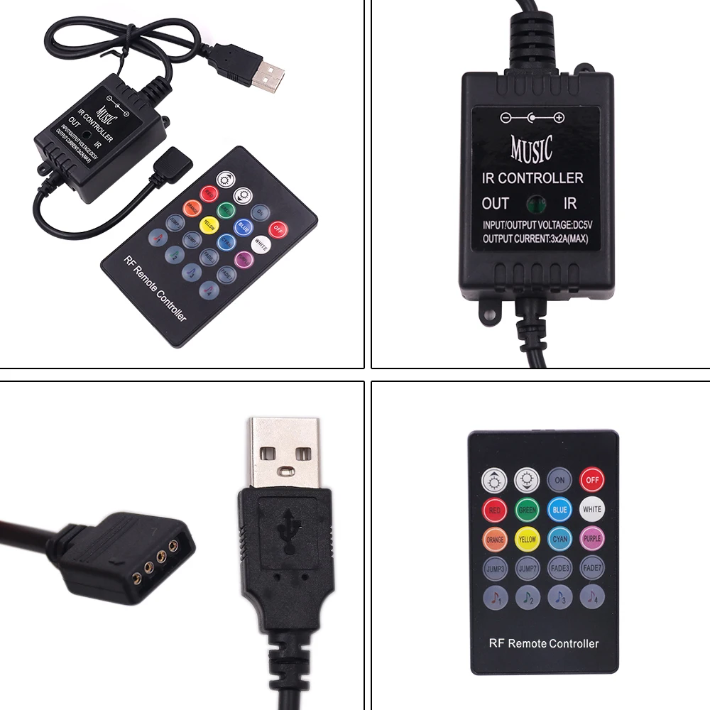 Ик-контроль: светодиодный блок x1 + приемник сигнала x1 + ик-контроллер 20Key x1 (аккумулятор в комплект не входит)