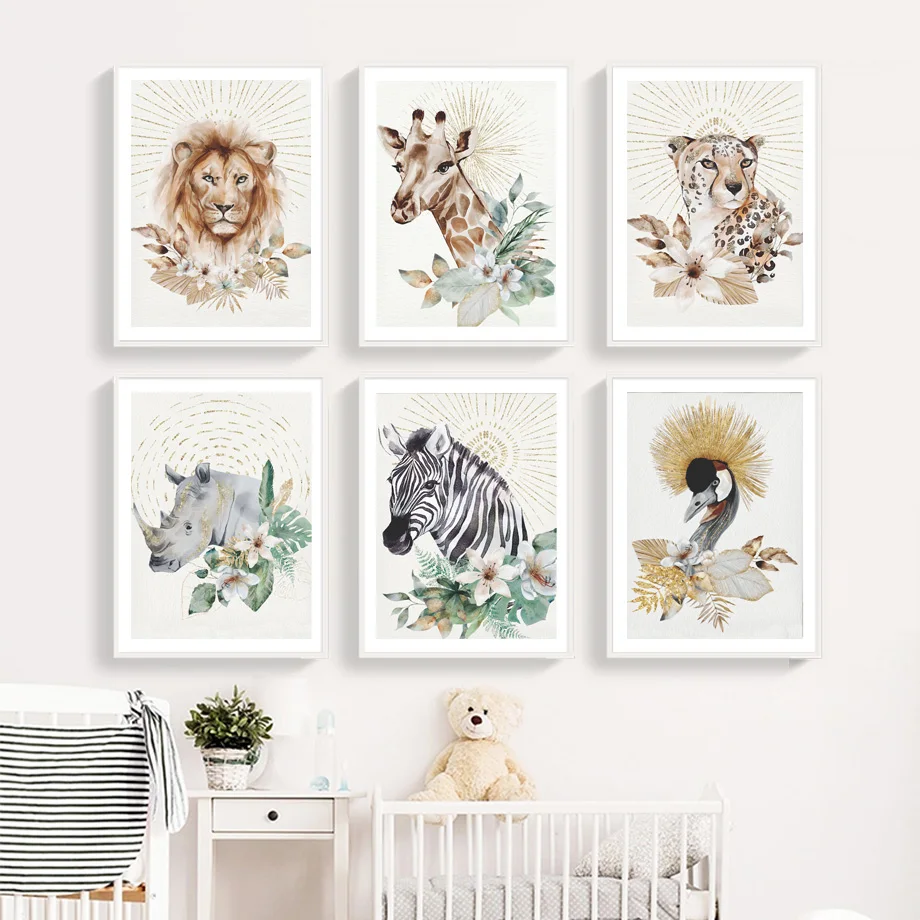 Зебра жираф крокодил Лев Сафари детская стена искусство холст карти...