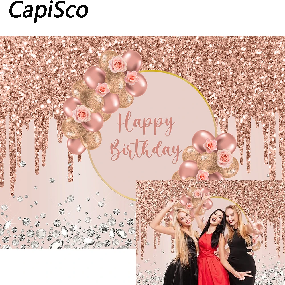 Золотой блестящий с днем рождения на заказ фон для фотостудии черны...