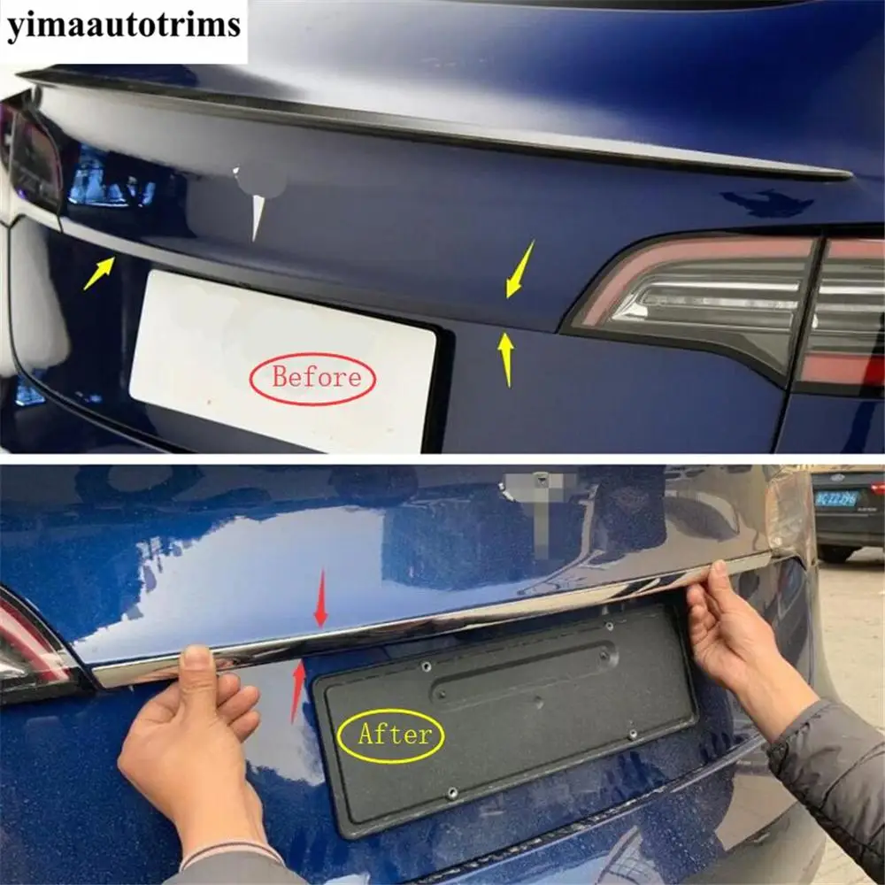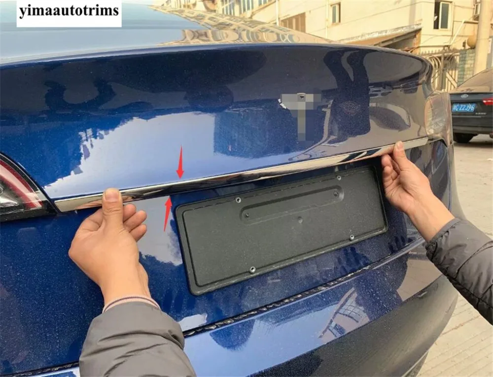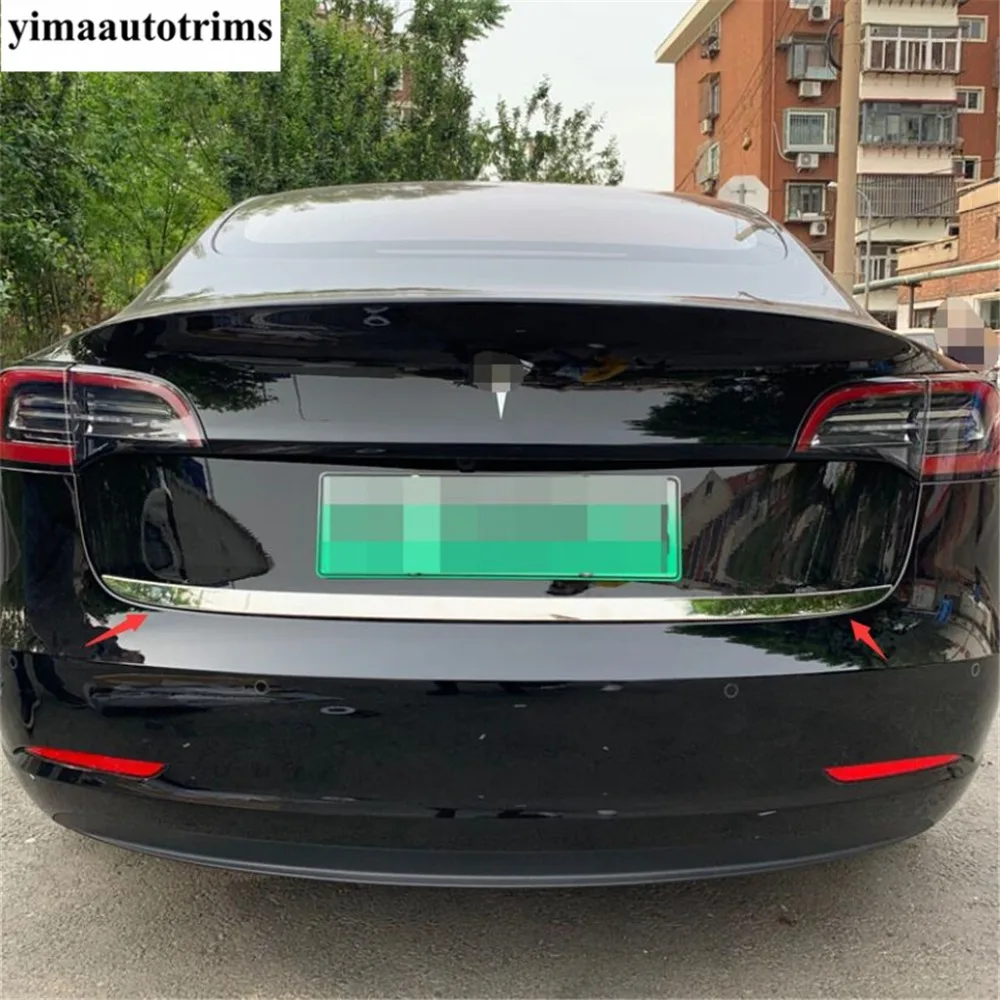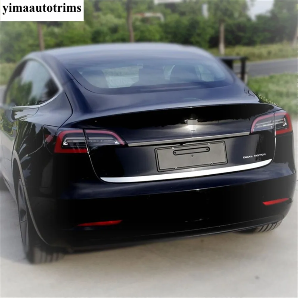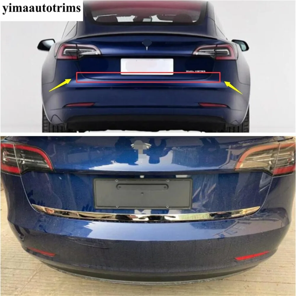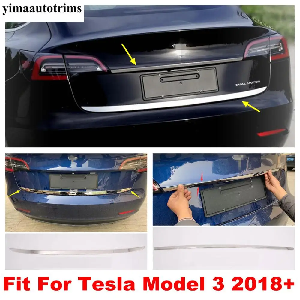 Задняя Крышка багажника, крышка багажника, Верхняя Нижняя Декоративная полоса, верхняя крышка, отделка для Tesla Model 3 2018-2021, аксессуары из нержавеющей стали