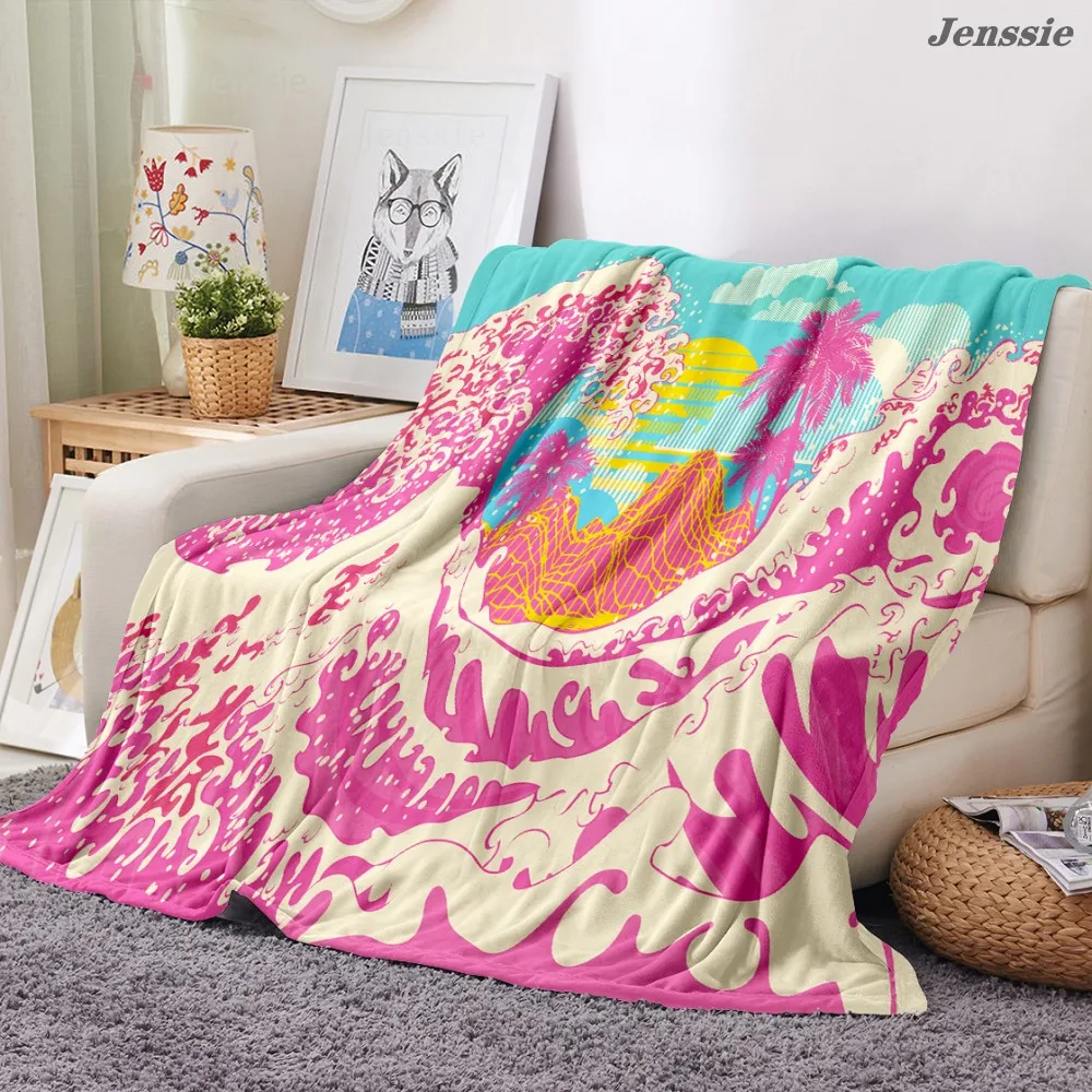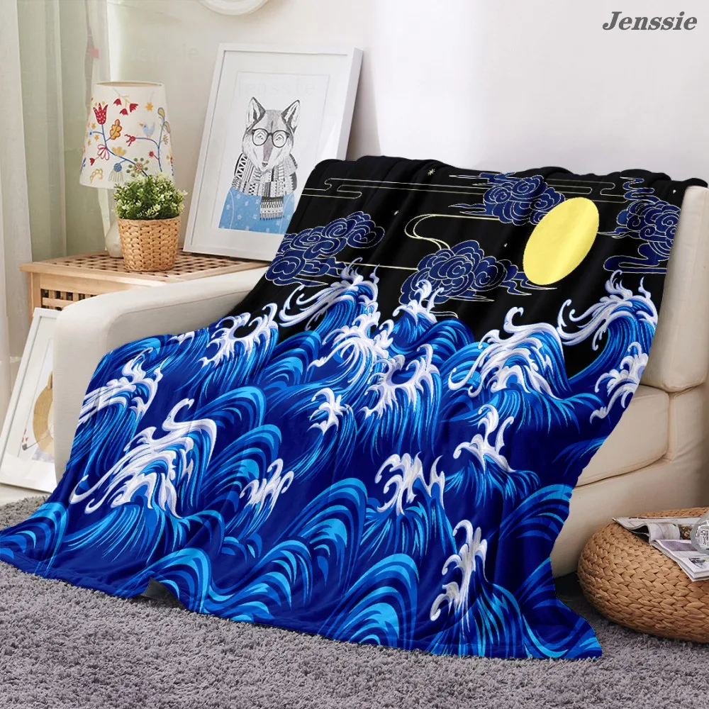 Фланелевое Одеяло в японском стиле, покрывало из шерпы с рисунком для дивана, ТВ, плюшевое одеяло для взрослых, ландшафт с морскими волнами x см