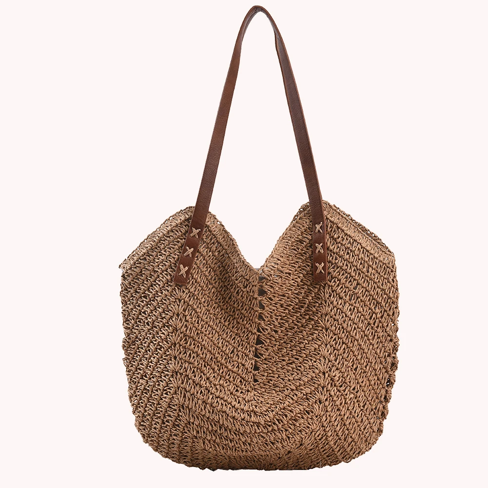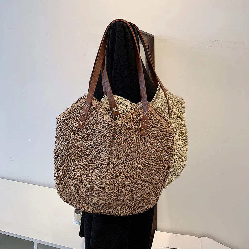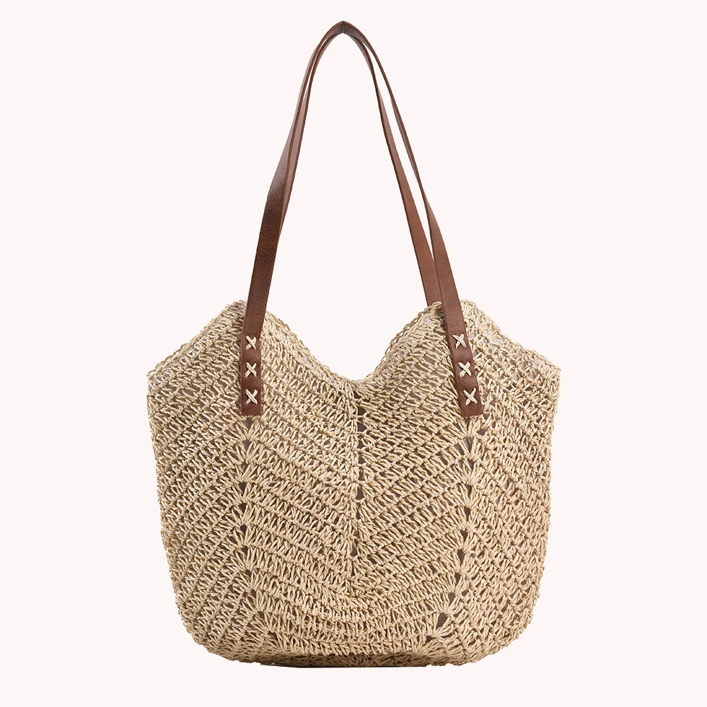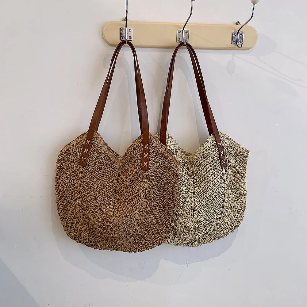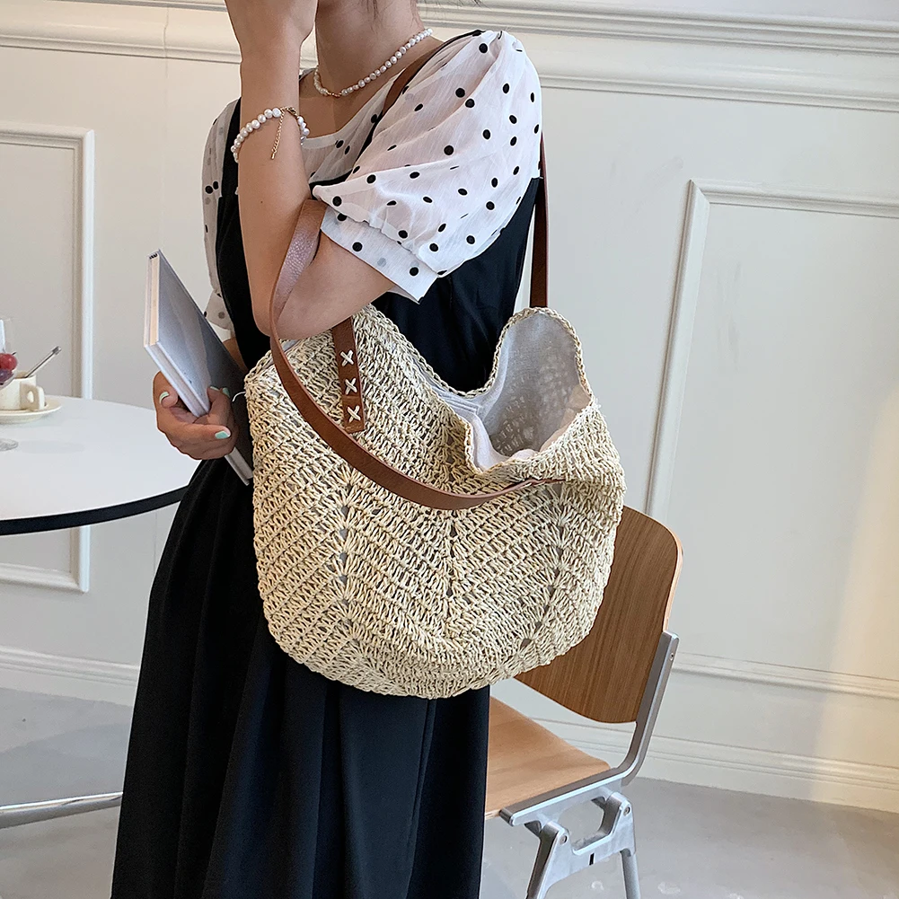 Летние богемные винтажные плетеные женские вместительные сумки через плечо, Модные ажурные соломенные женские пляжные дорожные сумки
