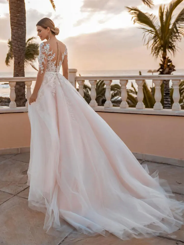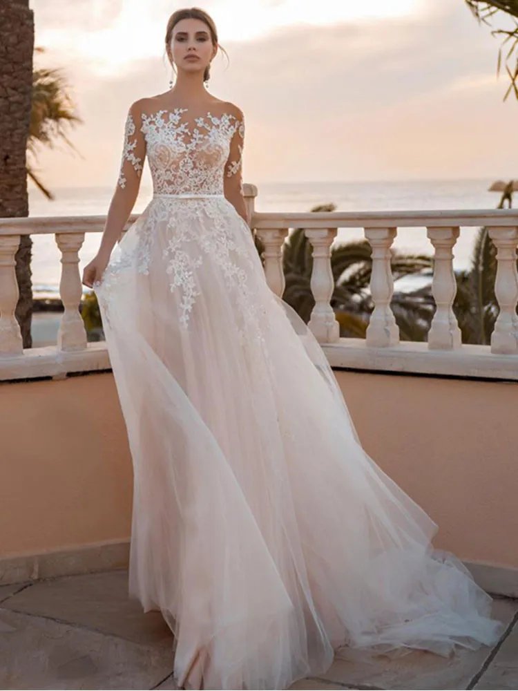 Женское кружевное свадебное платье, богемное ТРАПЕЦИЕВИДНОЕ платье из органзы с коротким рукавом, поясом и открытой спиной, с аппликацией, 2021