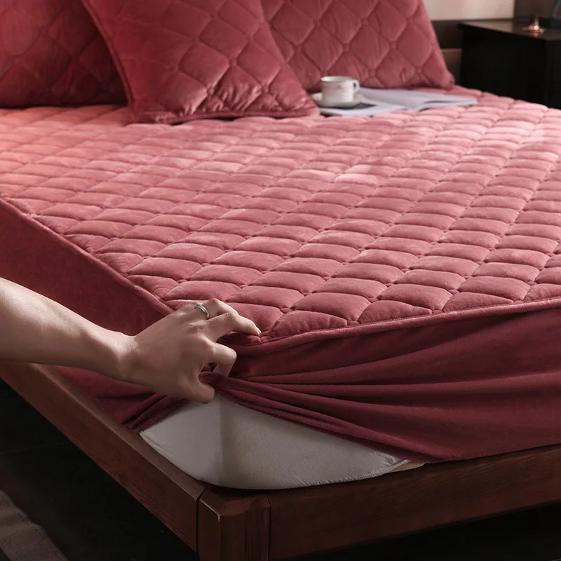 Плотный плюшевый стеганый чехол на матрас 160*200 см, теплый мягкий...
